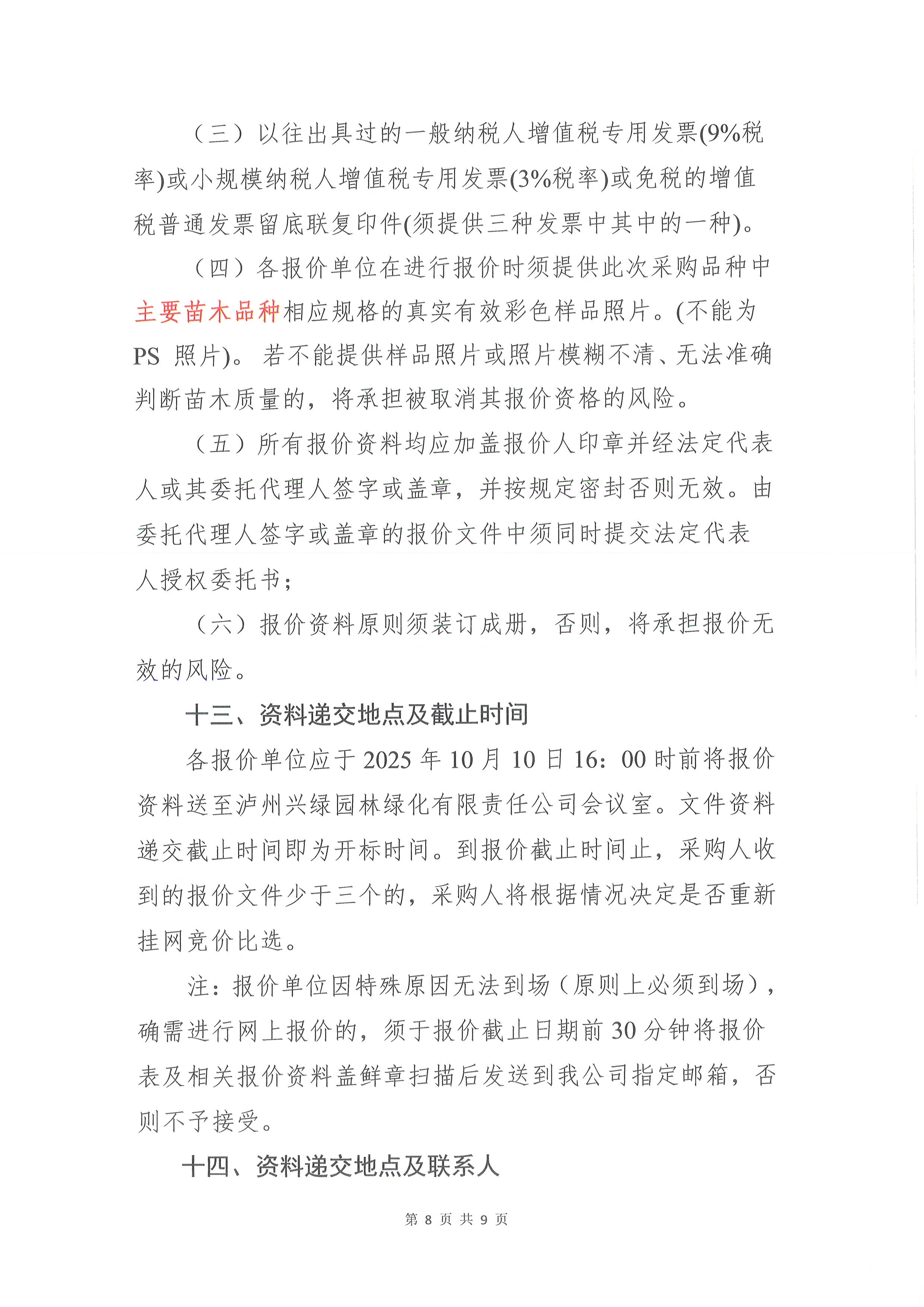 瀘州城投花木有限責(zé)任公司2025年維護(hù)部秋季苗木補(bǔ)植采購詢價公告